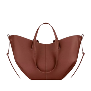 The Layeli Grande is a statement tote defined by its sculptural, winged silhouette and clean lines. Crafted from rich, grained calf leather, it balances structure with softness, luxury with practicality. The wide opening reveals a spacious interior, perfect for daily essentials, a laptop, or even light travel. Subtle gold-tone accents and a secure magnetic closure elevate the design with understated luxury.